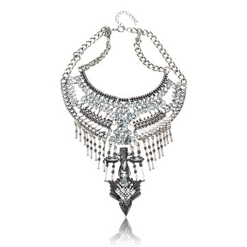 Arrow Rhinestone Tassel Bib Choker Statement Necklace