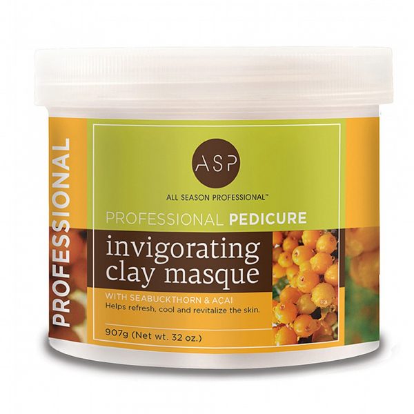 asp pedicure invigorating clay masque leaves skin refreshed, cooled and invigorated contains seabuckthorn and acai refreshing natural scent