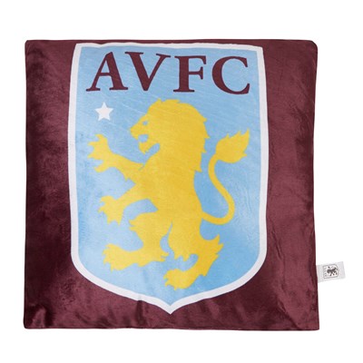 Aston Villa Cushion Spruce up your home in true Villa style with this Aston Villa Cushion. The satin finish in claret offsets the large Villa crest of gold lion rampant on a sky blue field beneath the team initials. None of your guests will doubt your team affiliation with this on your sofa! Details: • Signature Aston Villa claret colour• Villa crest in sky blue• Excellent addition to any Villa household!