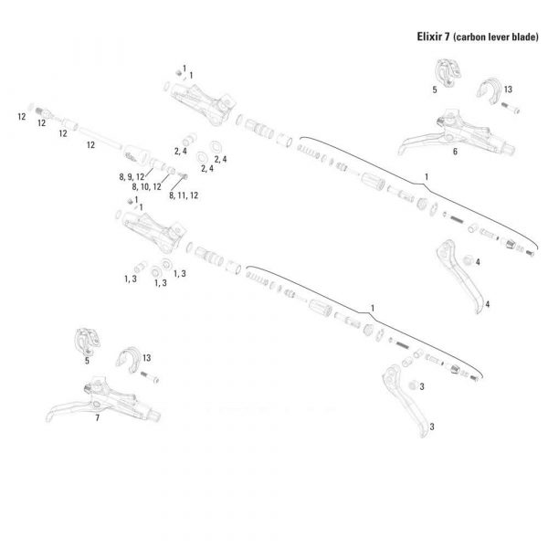 Avid Lever Internals, Service Kit ElixirAvid Lever Internals Service Kit Elixir 9/7, Elixir 7 Trail, Code R and X0 13-14 w, Carbon Blades