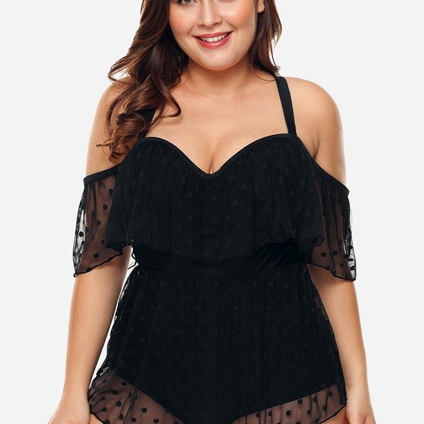 Back Criss Cross Plus Size Mesh Panel Swimwear