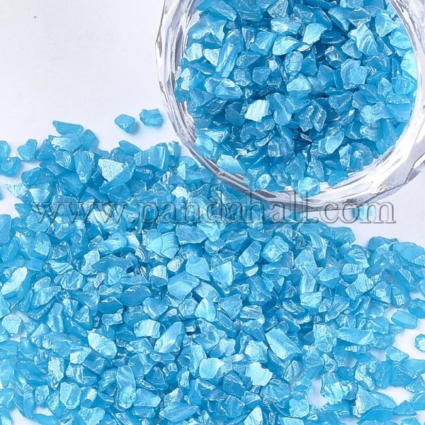Baking Painted Glass Beads, For Nail Art Decoration Accessories, No Hole/Undrilled, Chips, DeepSkyBlueSize: about 2~7mm long, 1~5mm wide, 0.5~2mm thick; about 450g/bag.