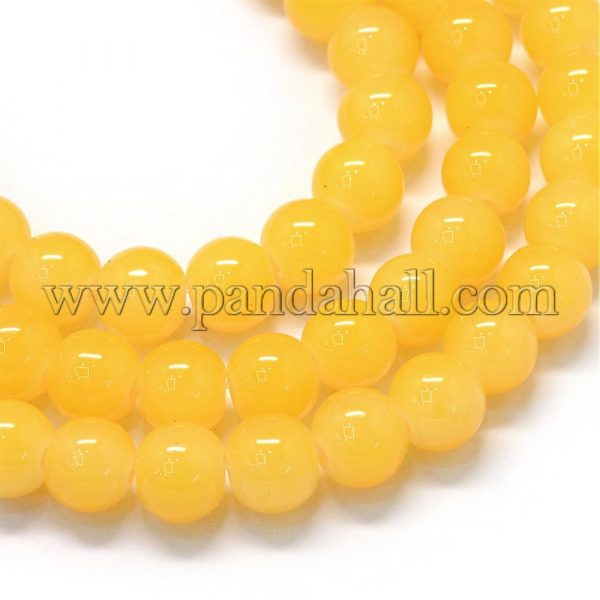 Baking Painted Imitation Jade Glass Round Bead Strands, GoldSize: about 6.5mm in diameter, hole: 1.5mm; about 145pcs/strand, 31.8″.
