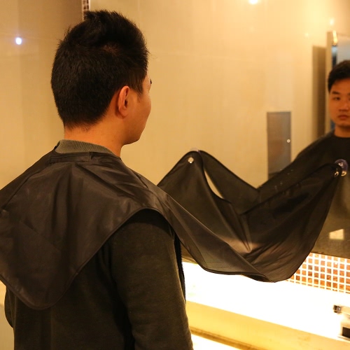 Beard Shaving Apron Gather Cloth Bib Facial Hair Dye Trimmings Catcher Cape with Two Suction Cups