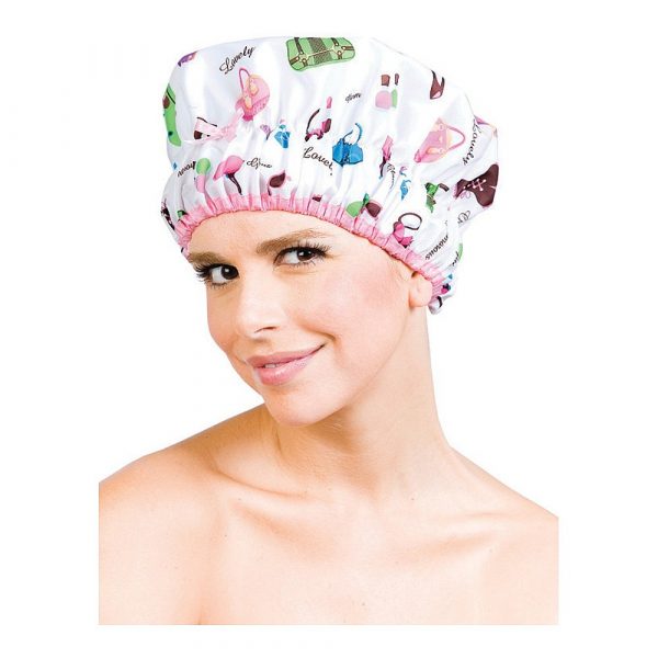 The fun way to cover hair during treatments, this Betty Dain Shower Cap with Fashion Diva design is ruched with elastic satin trim and finished with a bow.