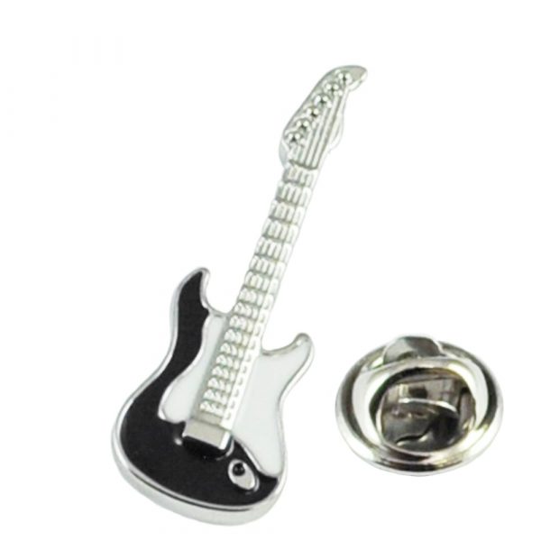 Black Electric Guitar Lapel Pin Badge Butterfly Clip Fastening Presented in a Gift Box