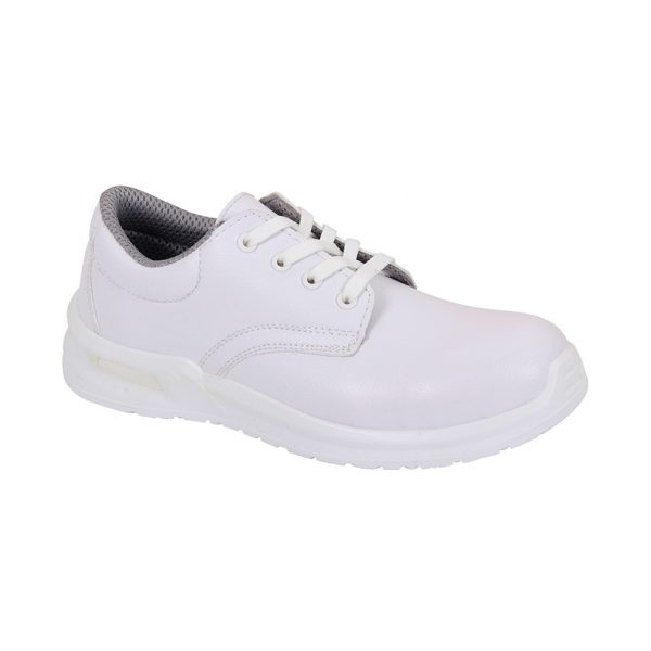 Excellent gripSteel toe cap 200 joule impactPolyurethane soleShock absorbent heelAnti-static sole resistant to solvents oils and temperatures up to 200°CWater resistant micro fibreConforms to EN20345 S2 SRCMachine washable