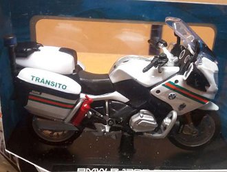 This BMW R1200 RT Diecast Model Motorcycle is White and features working side stand, steering, wheels. It is made by Maisto and is 1:18 scale (approx. 11cm / 4.3in long).