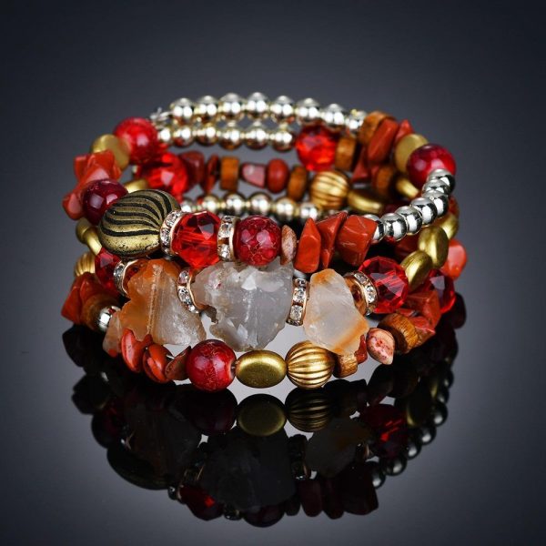Style: BohemianType: BraceletColor: Red, Green, Purple, White, Color, Pink, BlueWeight: about 33.5gDial Size: about 51mm/ 2.01Material: Stone, CrystalPackage Includes:1 x Bracelet