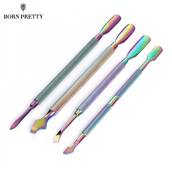 born pretty dual-ended chameleon nail cuticle pusher remover rainbow stainless steel manicure nail art tool 4 patterns