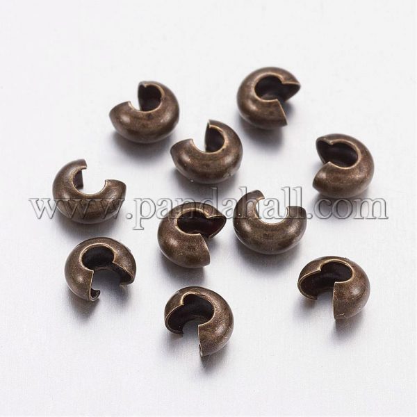 Brass Crimp Beads Covers, Nickel Free, Antique Bronze ColorSize: about 4mm in diameter(closed beads), hole: 1.5~1.8mmFinish it in style — Brass crimp covers are heavily plated for long-wearing jewelry designs. Works well for repurposing fashion jewelry components.