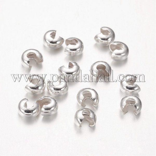 Brass Crimp Beads Covers, Nickel Free, Silver ColorSize: about 4mm wide, hole: 1.5~1.8mmFinish it in style — Brass crimp covers are heavily plated for long-wearing jewelry designs. Works well for repurposing fashion jewelry components.