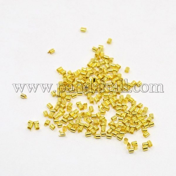 Brass Crimp Beads, Gold Color, Tubeabout 1.5mm long, 1.5mm wide ,hole: 1mm