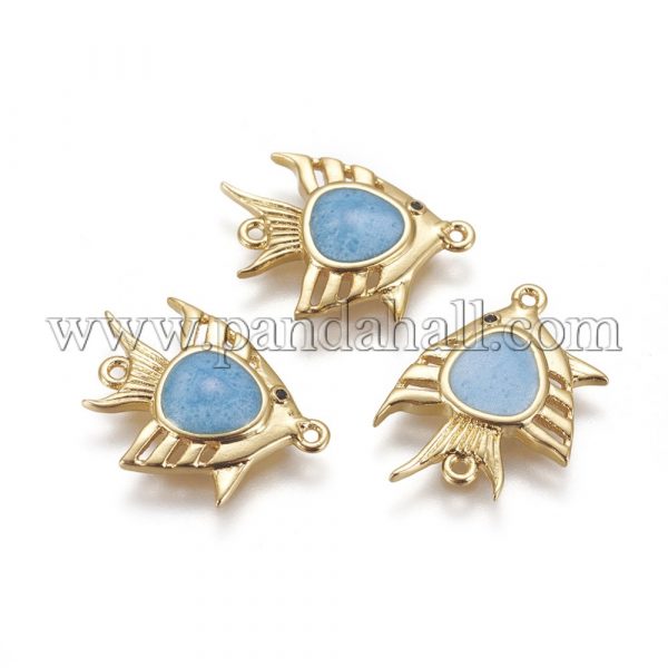 Brass Enamel Links/Connectors, with Cubic Zirconia, Fish, Golden, DeepSkyBlueSize: about 17mm wide, 13mm long, 3mm thick, hole: 0.8mm.