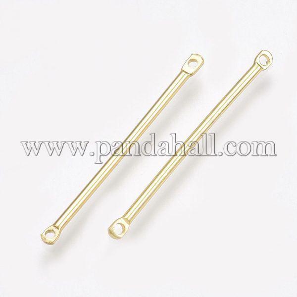 Brass Links/Connectors, Real 18K Gold PlatedSize: about 30mm long, 2mm wide, 1.5mm thick, hole: 1mm.