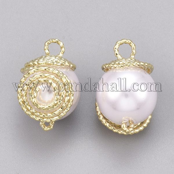 Brass Links, with ABS Plastic Imitation Pearl, Real 18K Gold PlatedSize: about 16mm long, 10mm wide, 11mm thick, hole: 0.8~2mm.
