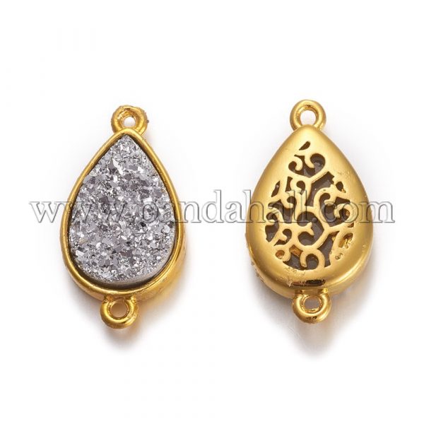 Brass Links, with Druzy Acrylic, Golden Plated Color, Drop, WhiteSmokeSize: about 10.5mm wide, 19mm long, 5.5mm thick, hole: 1.2mm