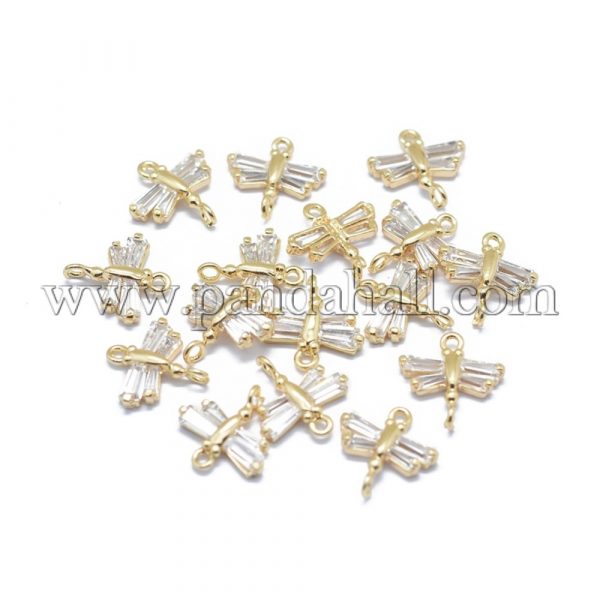Be the first to review “Brass Micro Pave Cubic Zirconia Links, Long-Lasting Plated, Dragonfly, Real 14K Gold Plated, Clear, 10x10x2mm, Hole: 1mm”