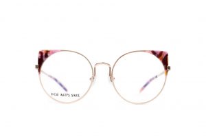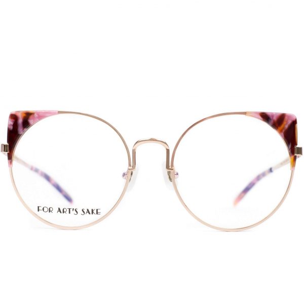 BRISKY is a light-hearted, playful take on the cat eye frame.? Handcrafted and finished in a rose gold?frame, these round optical glasses are accentuated by the deep pink marble acetate corners. T