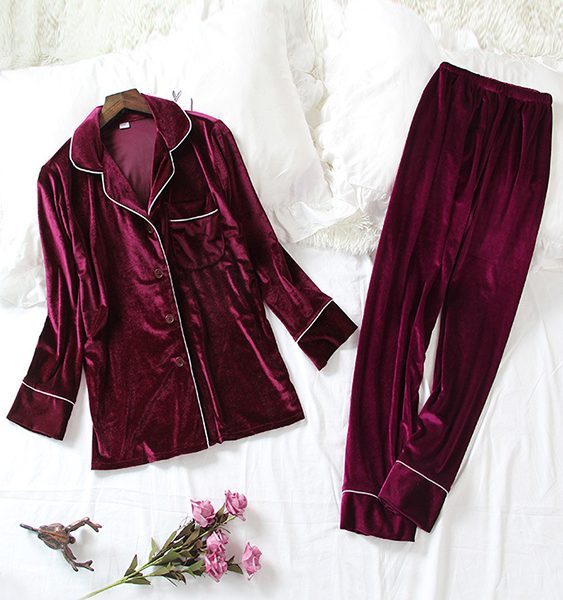 Simple luxury, this classic velvet pajama set that never goes out of style.We added button up and long sleeves to cozy up the look and keep you warm in cooler weather!