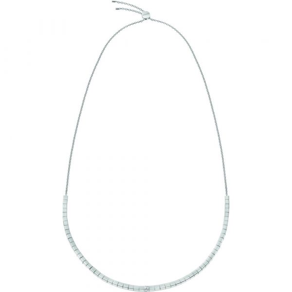 Calvin Klein Double Choker Necklace is made of stainless steel. Choker Necklace by Calvin Klein made from silver tone stainless steel cuboid beads The centre bead is stone set