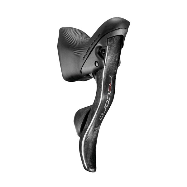 RECORD DISC BRAKE ERGOPOWER CONTROLSNew mechanical Ergopower 12X2 Speed Record Disc Brake controls: comfort, control, speed, reactivity.The new mechanical Ergopower 12×2 Speed Record Disc Brake controls take full advantage of the widely respected, proven Campagnolo technologies and have become indispensable for those who are in the saddle for extended periods. One such technology is Vari-Cushion, which offers an ergonomic, comfortable and safe support and grip. There is also the “one lever-one action” feature that assigns each lever one function to prevent shifting errors. The Ultra-Shift mechanism enables upshifting up to three sprockets at a time and downshifting a full five.Furthermore, the new mechanical Ergopower 12×2 Record Disc Brake controls offer lever adjustability that utilises Reach Adjustment to move the brake lever closer to the low grip, thus adapting to the different hand sizes. AMS Adjustment allows modulating the moment of shift engagement through the use of specific levers. The carbon fibre brake levers feature a unidirectional disposition of the fibre to ensure they match seamlessly with the other components of the groupset.Weight 463 grFEATURES & BENEFITSComfortable bodyThe controls enable a solid, safe grip when pedalling out of the saddle or gripping high on the handlebar.Rapid shiftingImmediate shifting engagement enables activating thederailleur with minimum effort and in any hand position on the handlebar.Multiple actionAn unplanned ascent, a sudden jerk: it takes barely a moment to find the right ratio owing to the multiple action of the controls.ErgonomicThe shape of the body and the possibility to adjust the reach enable all cyclists to use these controls, regardless of the size of their hands or fingers.