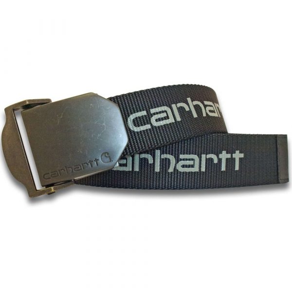 *Sizing Note* Carhartt are more generously sized you may need to consider dropping down a size from your traditional workwear clothing. The perfect accessory for any occasion – This men’s webbing belt from Carhartt is made from heavy duty nylon webbing. It has the Carhartt Signature graphic logo printed throughout strap and a leather tip at end of strap. Complete with a plaque buckle with engraved logo., Heavy nylon webbing., Signature graphic logo printed throughout strap., Leather tip at end of strap., Plaque buckle with engraved logo.