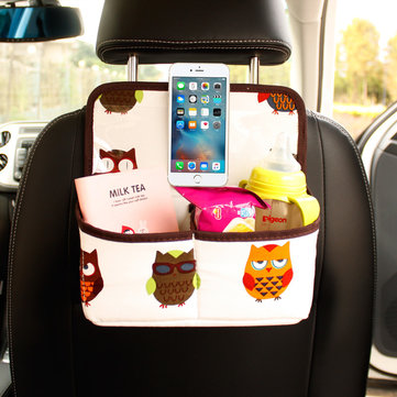 Cute Canvas Car Seat Back Bag Organizer Storage iPad Phone Holder Multi-Pocket