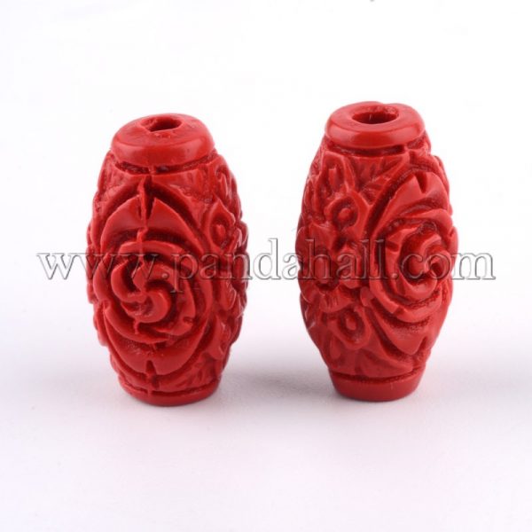 Carved Cinnabar Beads, Barrel, FireBrickSize: about 17.5mm long, 9.5mm wide, 9.5mm thick, hole: 2.5mm.