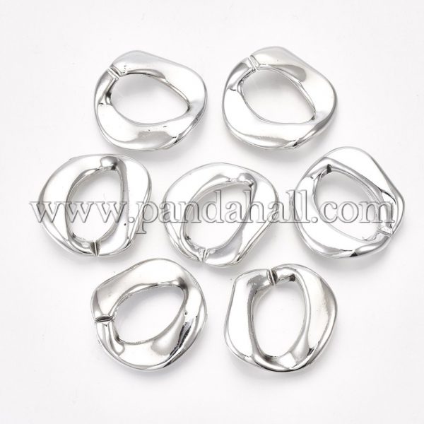 CCB Plastic Linking Rings, For Curb Chains Making, Unwelded, Twist, PlatinumSize: about 30mm long, 28mm wide, 5mm thick, hole: 20.5×12.5mm.