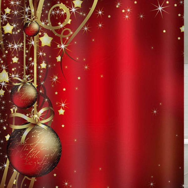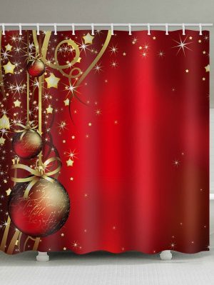 Christmas Balls Stars Print Waterproof Bathroom Shower Curtain
