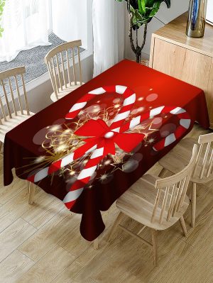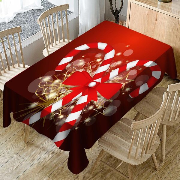 Christmas Candy Cane Print Fabric Waterproof Tablecloth
