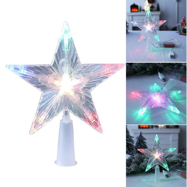 Christmas Decorations 3d Luminous Five-pointed Star Led Transparent Tree Topper With Lighting