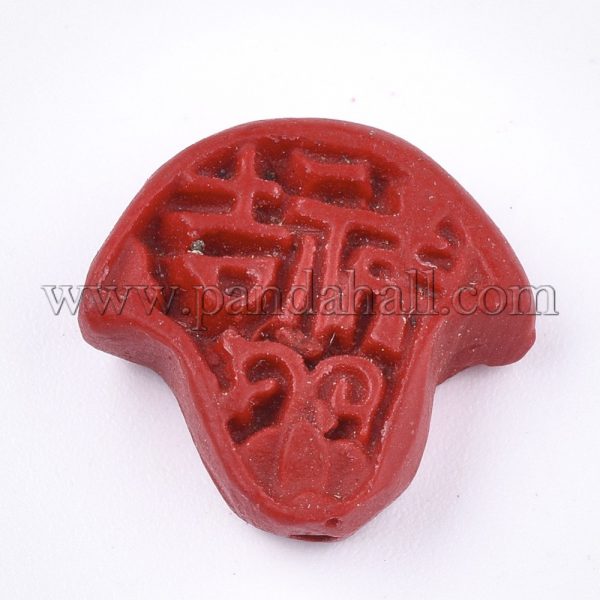 Cinnabar Beads, Carved Lacquerware, Mushroom, RedSize: about 16mm long, 16.5mm wide, 5.5mm thick, hole: 1.5mm.