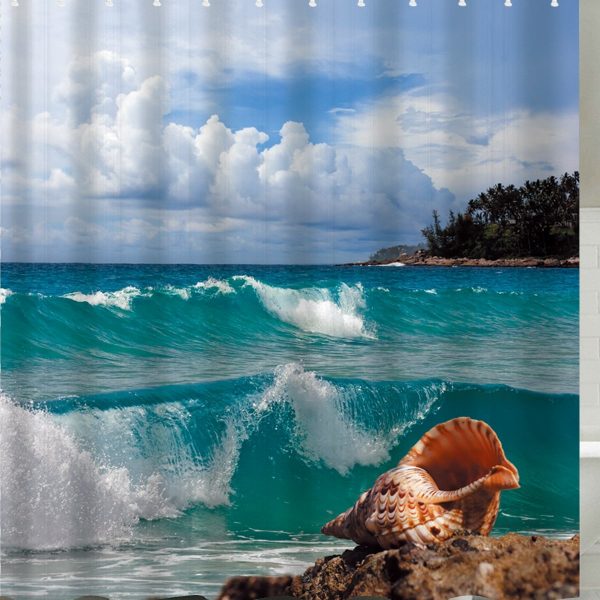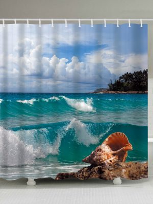 Conch Beach Print Waterproof Extra Long Shower Curtain