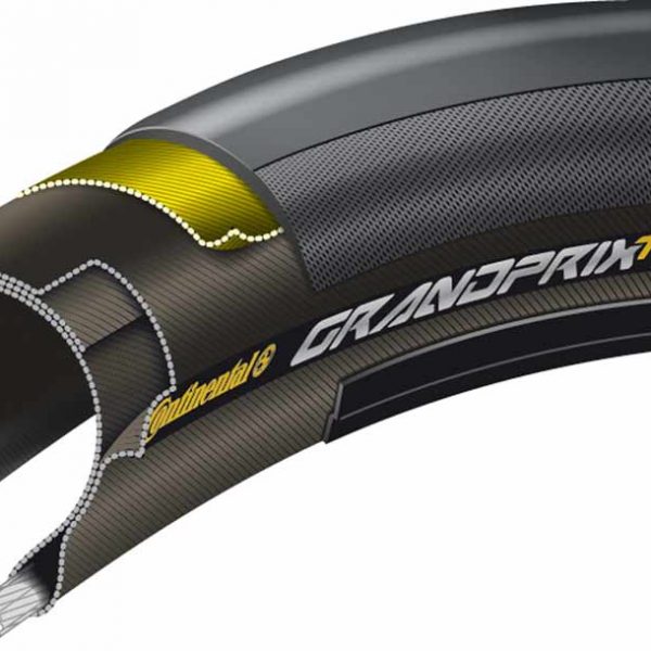 Continental Grand Prix TT 700 TyreThe Grand Prix TT tyre follows in the tracks of the time trial tubular Podium TT: a pure time trial tyre for serious competitors. It’s ambitions are apparent by looking at the tyre and seeing the slick centre tread profile ensuring every second is maximised. The slightly roughened shoulders give good assurance on rougher cornering. The Grand Prix TT is particularly lightweight thanks to it’s minimised tread, and is indescribably fast due to the latest Black Chili compound. It’s Vectran Breaker protects the tyre reliable from the threat of puncture