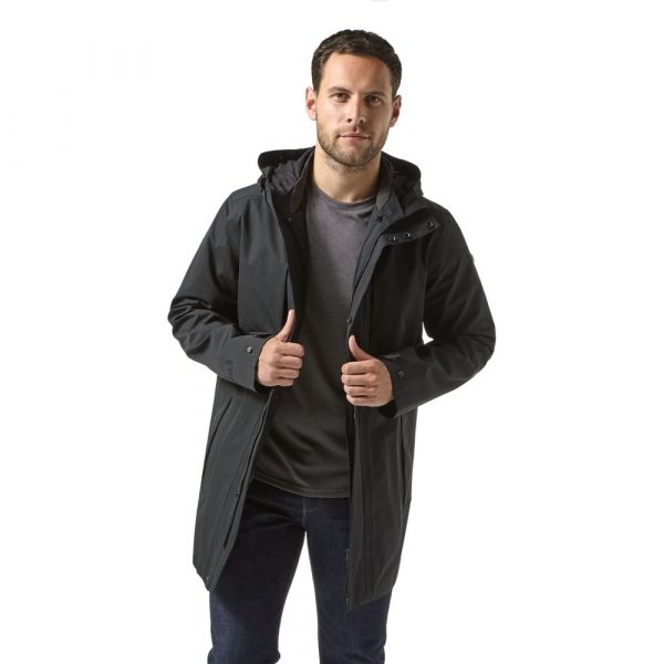 Channel a cool style and stay snug with Craghoppers Eoran Aquadry Hooded Waterproof Jacket. You can go into full hibernation mode with the longer-length design and grown-on hood. Avoid lugging about a man bag or briefcase the jacket has so many pockets throughout you can keep all your smaller belongings close to you., Aquadry., AquaDry Membrane., 9 pockets., Waterproof.
