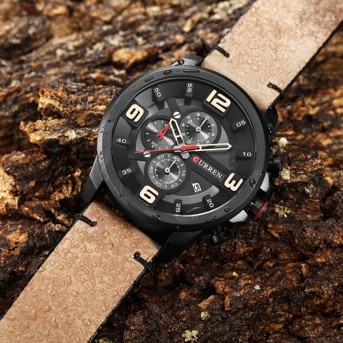 Three small dials inside, which are a minute chronograph, a second chronograph, and a 1/10 millisecond chronograph.