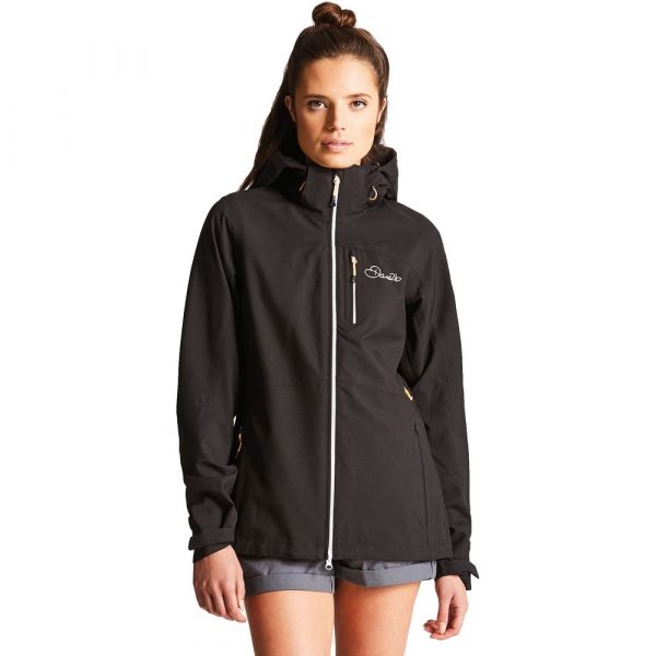 Dare 2b Women’s/Ladies VERATE Waterproof Breathable Durable Jacket Coat has ARED V02 20000 Oxford polyester 4-way stretch fabric with breathability rating up to 10 000/m2/24hrs. Its water repellent finish makes it durable. Its hoodie covers your head and ears very well. It comes with 1 zipped chest pocket 2 side pockets and 1 internal pocket with MP3 port. It is designed with articulated sleeves and adjustable cuffs & hem to give your full comfort., Waterproof and breathable Ared V02 20000 Oxford polyester 4-way stretch fabric. Breathability rating 10 000/m2/24hrs. Durable water repellent finish., Taped seams. Detachable technical wired peaked hood with adjusters. 2-way water repellent centre front zip with inner zip & chin guard., 2-way underarm ventilation zippers. Articulated sleeve design. Adjustable cuffs., 1 x zipped chest pocket with water repellent zip. 2 x zipped lower pockets with water repellent zips. Adjustable shockcord hem system., Part stretch mesh part polyester taffeta lining with WR. 1 x zipped internal pocket incl. MP3 port.