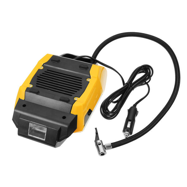 Description:Application: motorcycle scooter family cars, commercial cars, rubber boat, ball, bike, SUV off-road vehicles and so on1.Built fuse in cigarette lighter, securer for use2.Full copper motor, thickening copper wire, long service life3.Preset boost air pressure, reaching the preset pressure will automatically stop4.In night with LED light. It is a great when using the air compressor at night keeping your hands free without the need of carrying a flashlight as wellSpecification:Material: ABSWorking Voltage: DC 12VMax Measure Pressure: 260PSIMax Pressure: 60PSIPower:120WMeasure Precision: + / -2PSIUnit Pption: PSI, Bar, kPa, Lb / inOptional Type:Type 1(Digtal Display, Piston Rod Outer Diameter 22mm,22 Cylinder )Type 2(Pointer, Piston Rod Outer Diameter 22mm,22 Cylinder)Type 3(Pointer, Piston Rod Outer Diameter 19mm,19 Cylinder)Size: As the picture shownUsage:1.Connect tire via hose,and then connect the car power supply.2.Push button to start.3.Push button to stop when the tire reach the suitable pressure(around 35PSI).Then removethe connection.Package Included:1 X Tire Inflator Pump1 X Inflating Needle2 X Gas Nozzles
