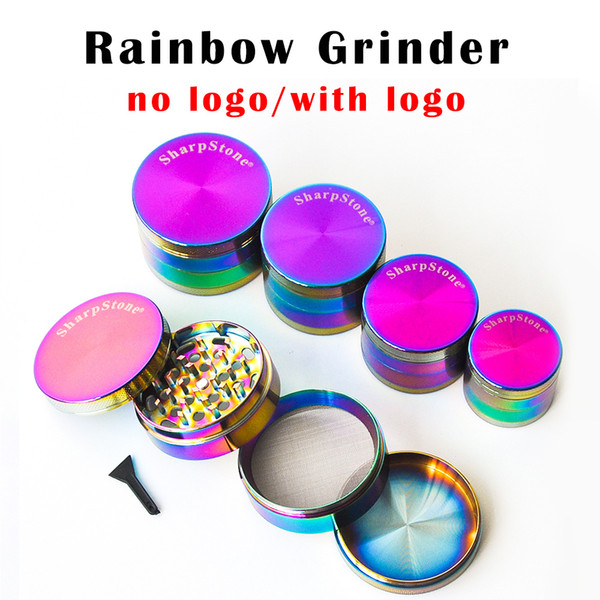 DHL Free Rainbow Grinder Herb Grinder 40mm 50mm 55mm 63mm 4 layer tobacco grinder Zinc Alloy Material Rainbow Laser Color Tobacco Grinders