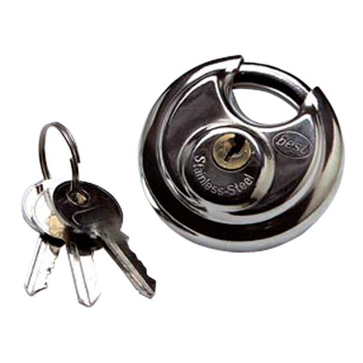 Discus Type Padlock with 3 Keys, Stainless Steel 60mm
