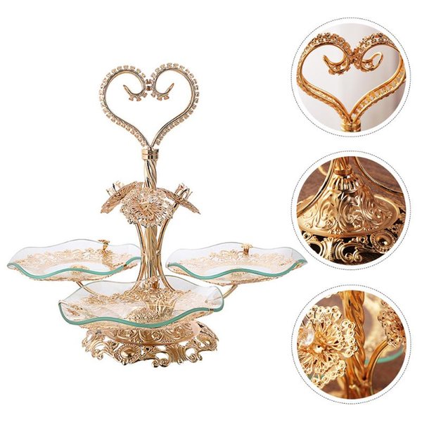 Dishes & Plates 1Pc Creative Plate Luxurious Fruit Tray Multi-layer European Style (Golden)