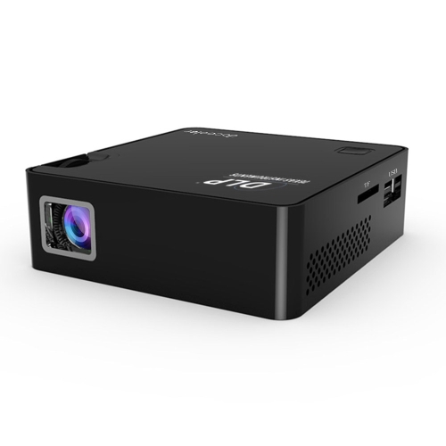 features DLP technology, ultra mini size and lightweight design. With 50ANSI lumens brightness, 854 * 480 native resolution and 800:1 Contrast Ratio, offering you a high definition video and photos. In additional, it supports U Disk Reading and TF Card Reading up to 64GB. Lightweight and Pocketsize, easy to carry it everywhere.