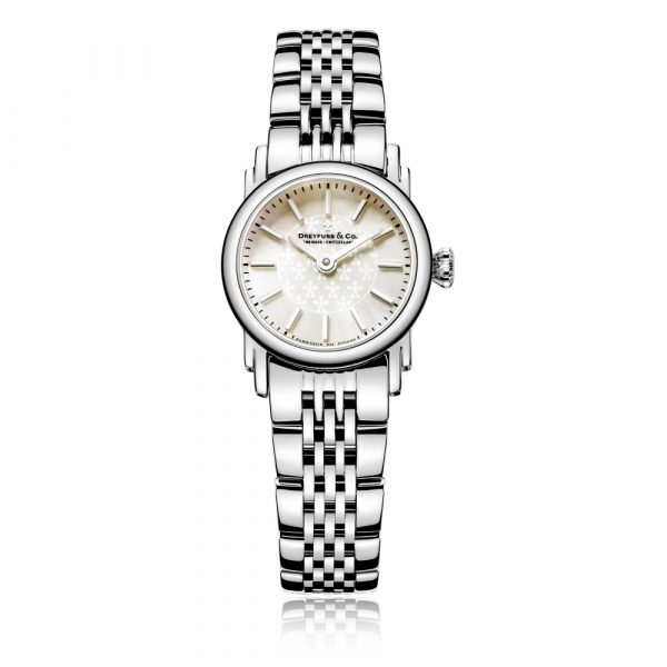 Item Shape – Round Dial Window Material Type – Saphire Glass Display Type – Analogue Clasp Type – Deployment Case Material – Stainless Steel Case Diameter – 23.00 Case Thickness – 7.50 Band Material – Stainless Steel Band Length – Ladies Standard Band Colour – Silver Tone Dial Colour – Mother of Pearl Movement – Quartz Water Pressure Resistance – 100M Ladies elegantly hand made and Swiss made stainless steel bracelet watch with a light coloured dial with Dreyfuss & Co logos and silver indexes. The watch have high visibility sapphire glass to ensure the watch is best quality. Totally waterproof, the Seafarer stamp gives you the reassurance that you can enjoy all your water sports without fear of damaging your watch.