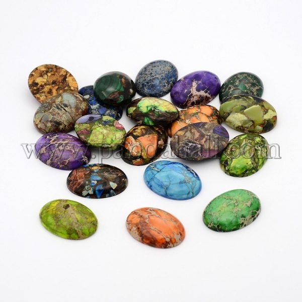 Dyed Natural Regalite/Imperial Jasper/Sea Sediment Jasper Oval Dome Flatback Gemstone Cabochons, Mixed ColorSize: about 22mm wide, 30mm long, 8mm thick.