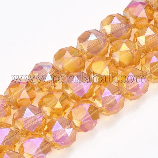 Electroplate Glass Beads Strands, Faceted, Round, DarkOrangeSize: about 11.5mm in diameter, 11mm thick, hole: 1.5mm; about 60pcs/strand, 26.3”.