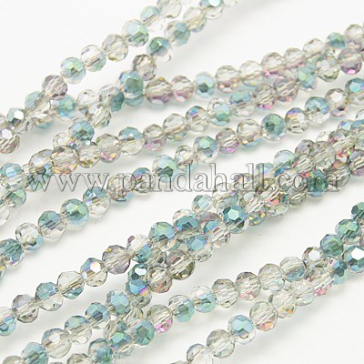 Electroplate Glass Beads Strands, Half Plated, Faceted Round, GreenSize: about 3mm in diameter, hole: 1mm, about 100pcs/strand, 11.5″.