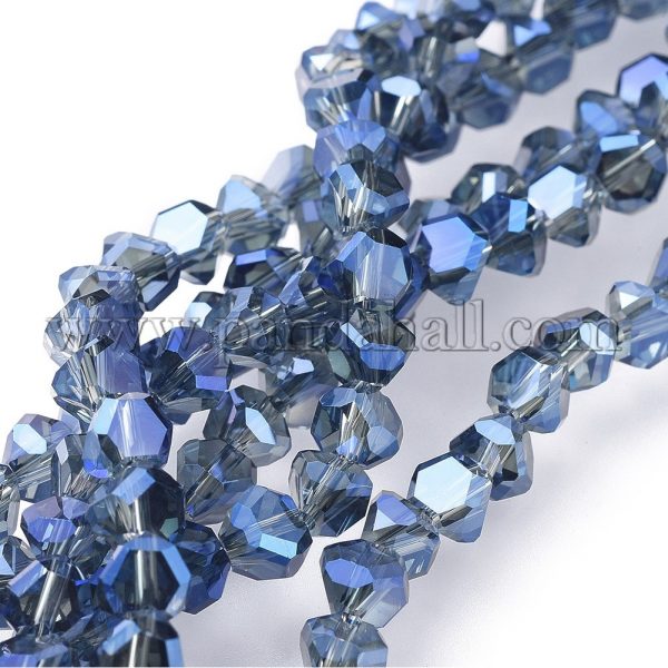 Electroplate Transparent Glass Beads Strands, Full Rainbow Plated, Faceted, RoyalBlueSize: about 5.5mm wide, 5mm long, 5.5mm thick, hole: 1.2mm; about 78~80pcs/strand, 13.35″~16.14″(39~41cm).