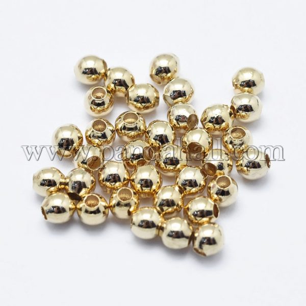 Electroplated Brass Beads, Long-Lasting Plated, Nickel Free, Round, Real 18K Gold PlatedSize: about 3mm in diameter, hole: 1mm, about 1254pcs/bag.